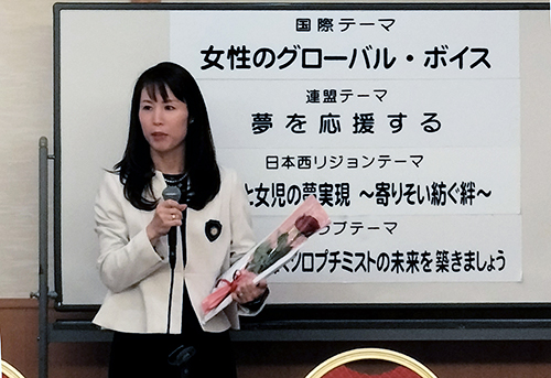 会長 灘尾亜紀子 クラブテーマ「優しい心 ソロプチミズムを大切に」